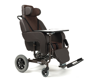 Livré avec appui-tête, harnais et repose-jambes réglables en inclinaison par vérin.